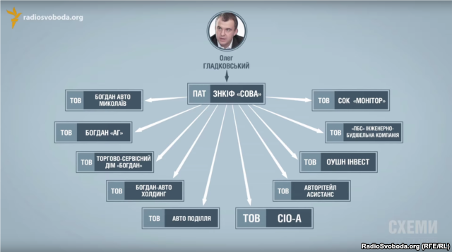 Крім того, Гладковський володіє фондом «Сова». Майже всі підприємства групи «Богдан», а ще – низка фірм, що займаються торгівлею автомобілів, підконтрольні саме «Сові». Загалом їх 10.