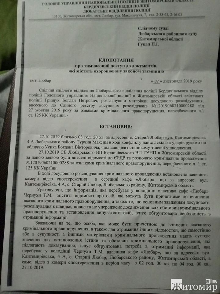 В загальному хочу додати, що такого безладу та безкарності немає, мабуть, ніде. Ніхто не хоче працювати по хуляганці та по легких тілесних, але на сьогодні це найпоширеніші справи. Такого замилювання очей, очевидного затягування справи і придумати не можна. Любарчани, невже усі закривають очі на такі вчинки в Любарі? Пропоную поширити та підтримати даний допис, надати справі хоч трохи розголосу, та не допустити того, щоб на дану справу закрили очі. Пам\’ятайте, тут живете Ви, ваші діти та внуки, і подібні вчинки можуть відбутись і з ними!!!, – написав Богдан Усик.