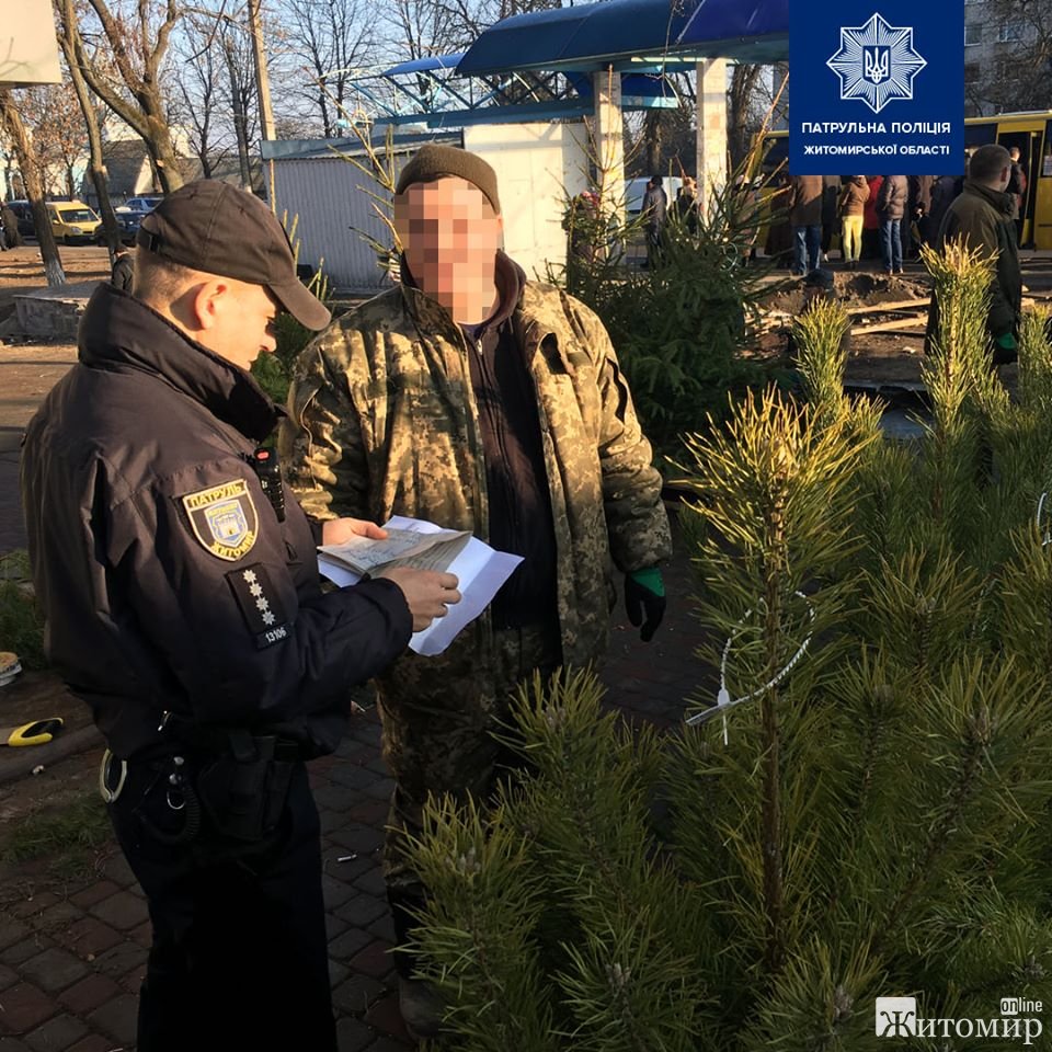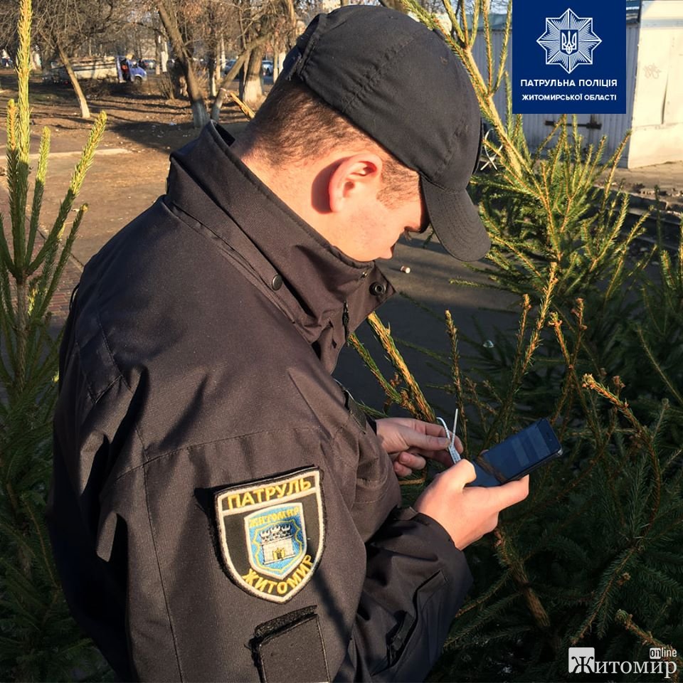 У Житомирі 19 грудня інспектори управління патрульної поліції розпочали перевірки у місцях продажу новорічних ялинок та сосен по всьому місту.