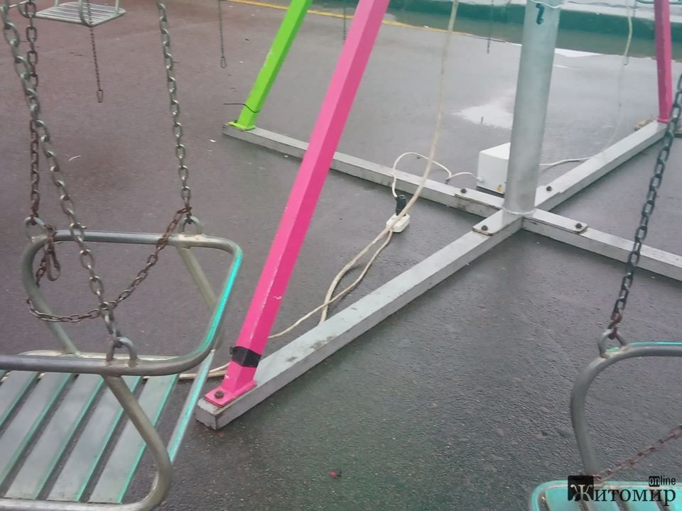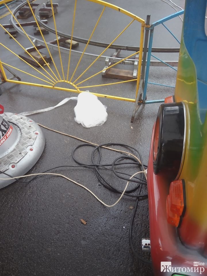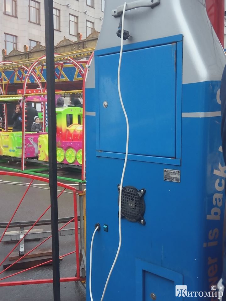 На майдані Корольова у Житомирі біля дитячих атракціонів, які встановили на період Різдвяної ярмарки, валяються дроти.