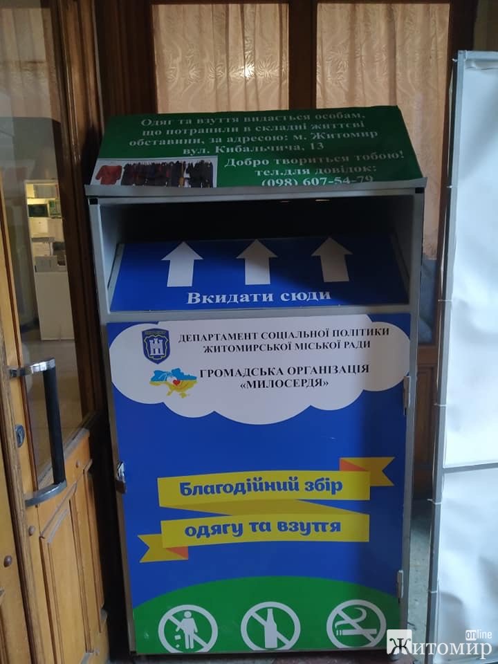Житомирянка Ксенія Лавріна пропонує віддавати непотрібний одяг та взуття до притулків, бокси для збору речей знаходяться за декількома адресами в обласному центрі.