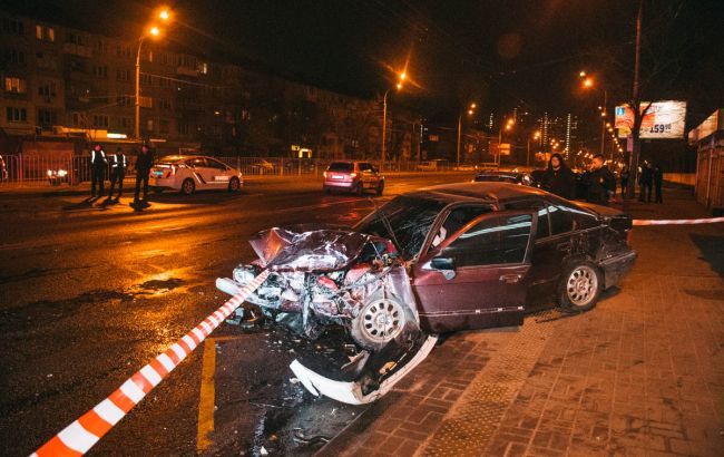За словами свідків ДТП, BMW їхав по бульвару Перова у бік Дарниці, а в цей момент з вулиці Петра Запорожця виїжджав Nissan, який не пропустив “німця” і зіткнувся з ним. В результаті удару BMW влетів у зупинку.