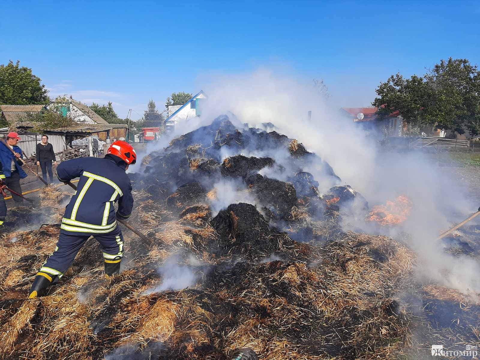 “На місці події бійці ДСНС встановили, що на приватній земляній ділянці (городі) горить біля 300 тюків сіна. Існувала загроза розповсюдження вогню на розташовану неподалік господарську будівлю.Спільними зусиллями рятувальників та небайдужих селян о 13:20 пожежу було локалізовано та о 14:20 – ліквідовано. Вогнем знищено 7 т сіна. Вдалося запобігти перекидання полум’я на господарську будівлю і вона залишилася неушкодженою. До ліквідації загоряння залучалося 4 чоловіки особового складу та 1 одиниця пожежної техніки“, – розповіли рятувальники.