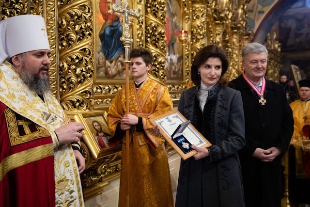 Очільник ПЦУ також відзначив церковною нагородою і Марину Порошенко. «Прийміть цей церковний орден на честь Святої Рівноапостольної Княгині Ольги за жертовну любов та віддану працю на благо нашої Помісної Української Православної Церкви і побожного українського народу», – сказав Епіфаній.