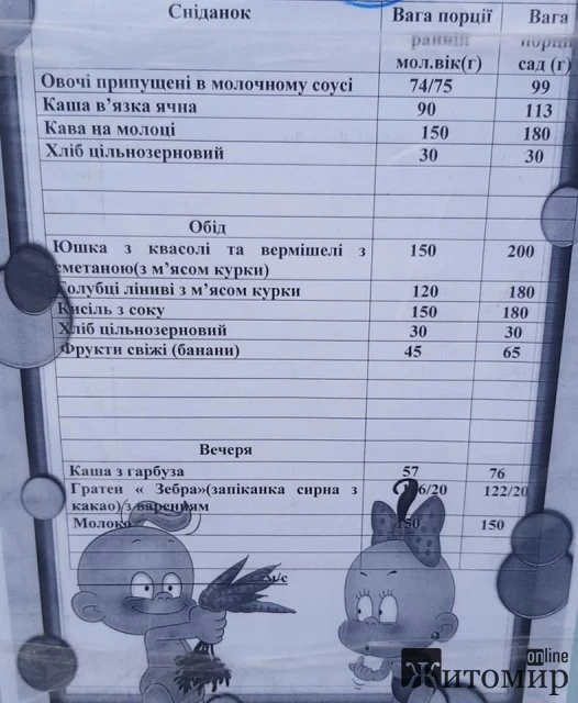 Не всі житомирські батьки задоволені новим меню в дитячих садочках. Житомиряни звертають увагу на те, що воно ніби і непогане, але кухарі не готують так, як потрібно за “меню Клопотенка”.