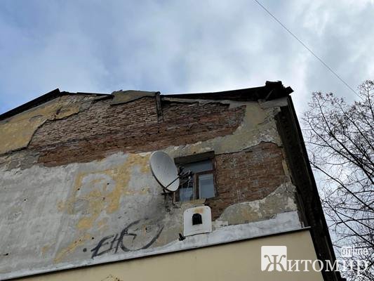 – Після маленьких дощів з цього аварійного будинку знову посипалася штукатурка. Слава Богу, дощі йшли вночі і штукатурка теж сипалася вночі, ніхто не постраждав, – бідкався наш інформатор. – Незабаром дощі будуть сильнішими і з цього будинка падатимуть більші шматки штукатурки. Хтось із житомирян або гостей міста може постраждати. Якщо це байдуже власникам будинку, то у міській раді мали б їм нагадати, що їх у разі якоїсь трагедії чекає кримінальна відповідальність…