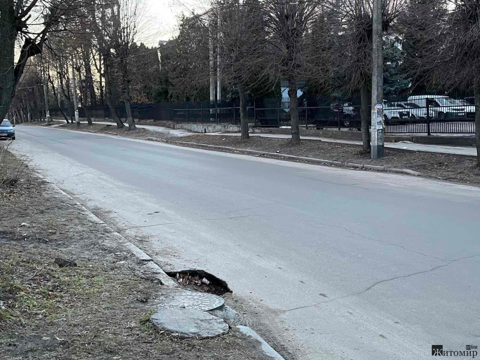 – Провалився під землю шматок дороги! Чому це нікого не хвилює? – Бідкався житомирянин. – Ця баюра може коштувати життя якомусь мотоциклістові чи ведосипедисту, ця баюра може стати причиною якоїсь ДТП із жертвами. Невже у цьому місті ніхто не стежить за дорогами? Житомир стає все більше і більше схожим на якусь Африку…
