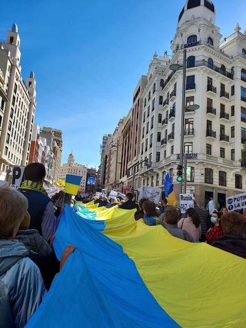 Українці мітингували перед будинком уряду Іспанії. Вимагали закриття неба над Україною та визнання іспанським урядом факту війни в Україні, а не “вторгненням”, як про це пишуть іспанські видання.