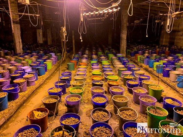 «Поліцейські Радомишльського відділення Житомирського РУП провели слідчі дії на території колишнього підприємства, нині недіючого, розташованого на околиці міста. У результаті виявлено масштабну ферму по вирощуванню та виготовленню наркотичних засобів. Встановлено причетність до незаконної діяльності групи осіб. Усі вони жителі Луганщини, віком від 44 до 25 років. Наразі чоловіки затримані, а з цеху вилучено близько 300 кг зелених рослин конопель, що проходили термічну обробку, 10 мішків з шишками нарковмісних рослин, кілька сотень ємностей для вирощування, обладнання для підігріву, освітлення і зрошення, автомобіль та інші свідчення протиправної діяльності», – йдеться у повідомленні.