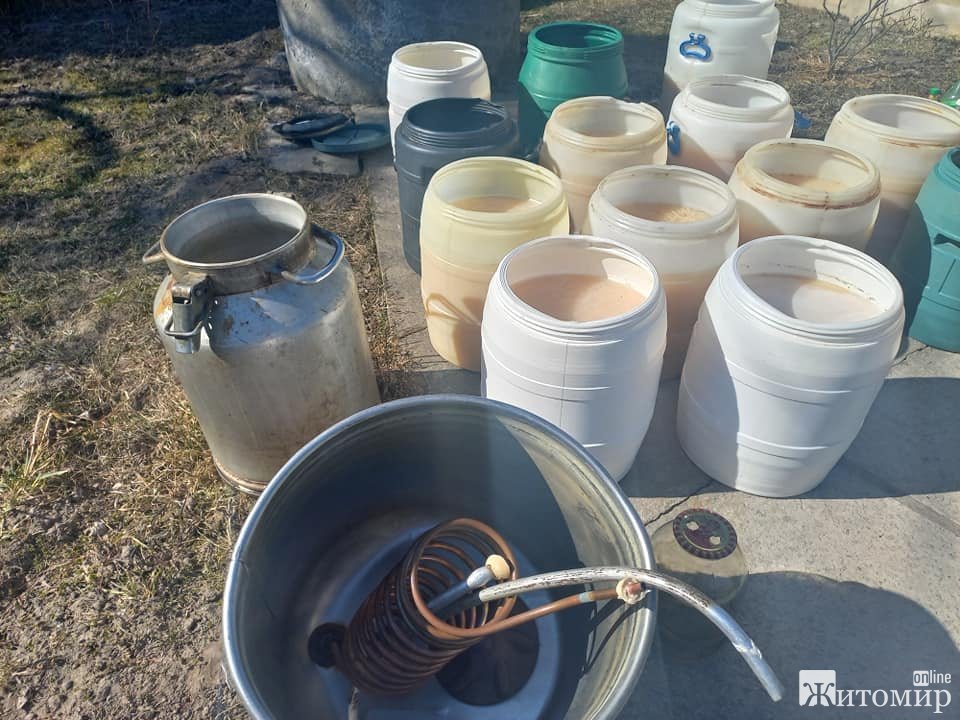 21 березня у жителя Баранівки поліцейські вилучили та знищили близько 350л сировини для виробництва самогону (браги), самогонний апарат та близько 10л самогону.