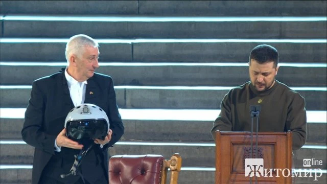 Президент України також подарував Великій Британії шолом українського пілота, на якому були написані слова “У нас є свобода – дайте нам крила, щоб захистити її”.