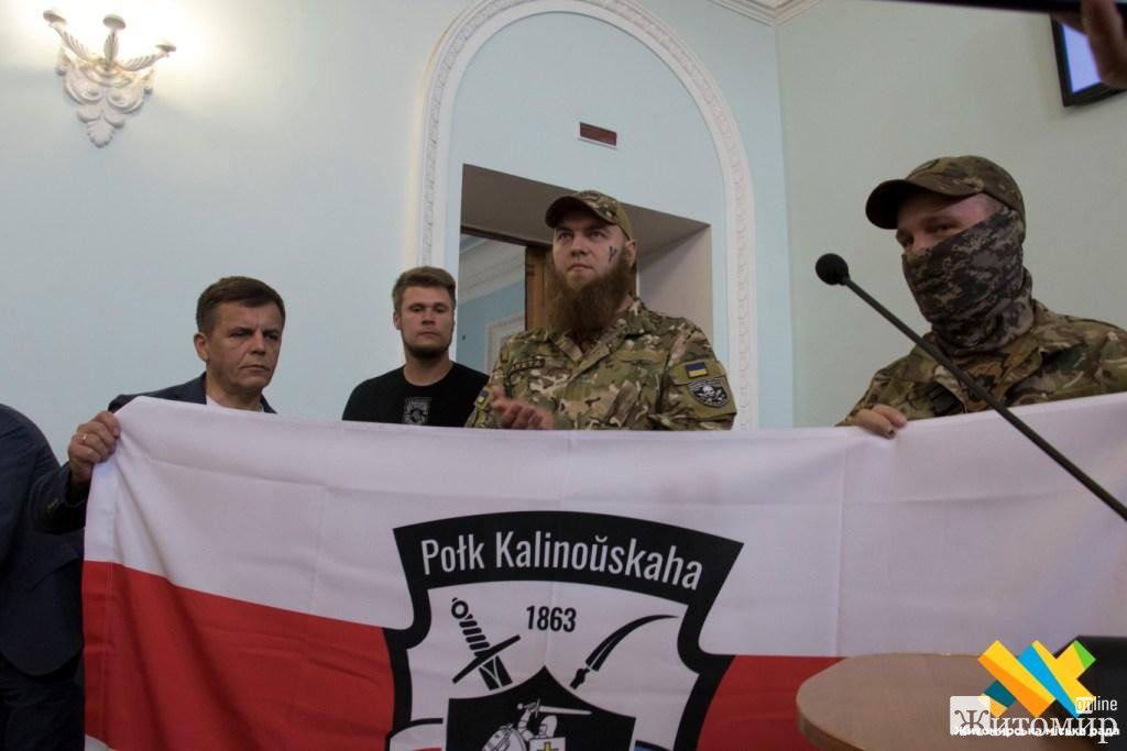 “У нас з Україною спільний ворог. Білорусь окупована росією та режимом лукашенка, – кажуть представники полку. Сьогодні Сергій Сухомлин вручив прапор Житомира бійцям. “Коли білоруси звільнять свою країну від окупації, цей прапор буде у білоруського міста, яке стане побратимом Житомира”, – каже міський голова. – Дякую всім хлопцям та дівчатам полку Калиновського, які з 2014 року захищають незалежність України”.