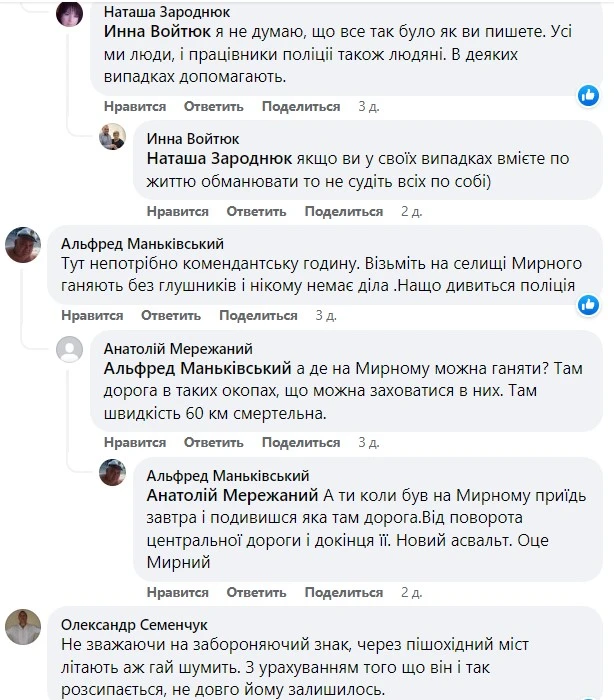 Враховуючи скарги місцевих мешканців, начальник Бердичівської районної військової адміністрації дала доручення звернути увагу (поліції) на рух мотоциклістів по місту Бердичеву під час комендантської години та провести відповідну роботу.