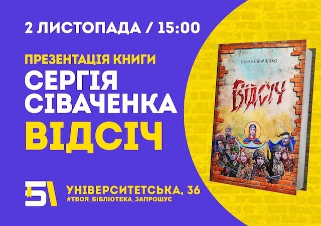 Сергі́й Микола́йович Сіваче́нко — український поет, журналіст і громадський діяч презентуватиме свою нову книгу “Відсіч” 2 листопада 2023 року о 15 годині в Обласній бібліотеці для дітей та юнацтва.