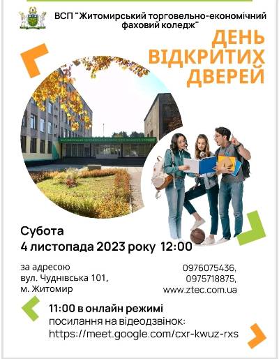 Житомирський торговельно-економічний фаховий коледж запрошує на день відкритих дверей