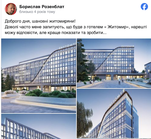 Згодом нові власники презентували ескізи того, як буде виглядати переформатований тризірковий готель «Житомир» і пообіцяли відкрити його вже восени 2021 року.