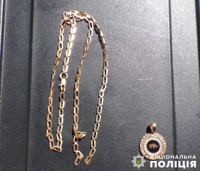 “На місці події схвильована 51-річна місцева жителька розповіла, що йшла вулицею міста, коли невідомий чоловік зірвав з її шиї золотий ланцюжок та побіг у невідомому напрямку. Жінка зазначила, що вартість прикраси складає понад 20 тисяч гривень.