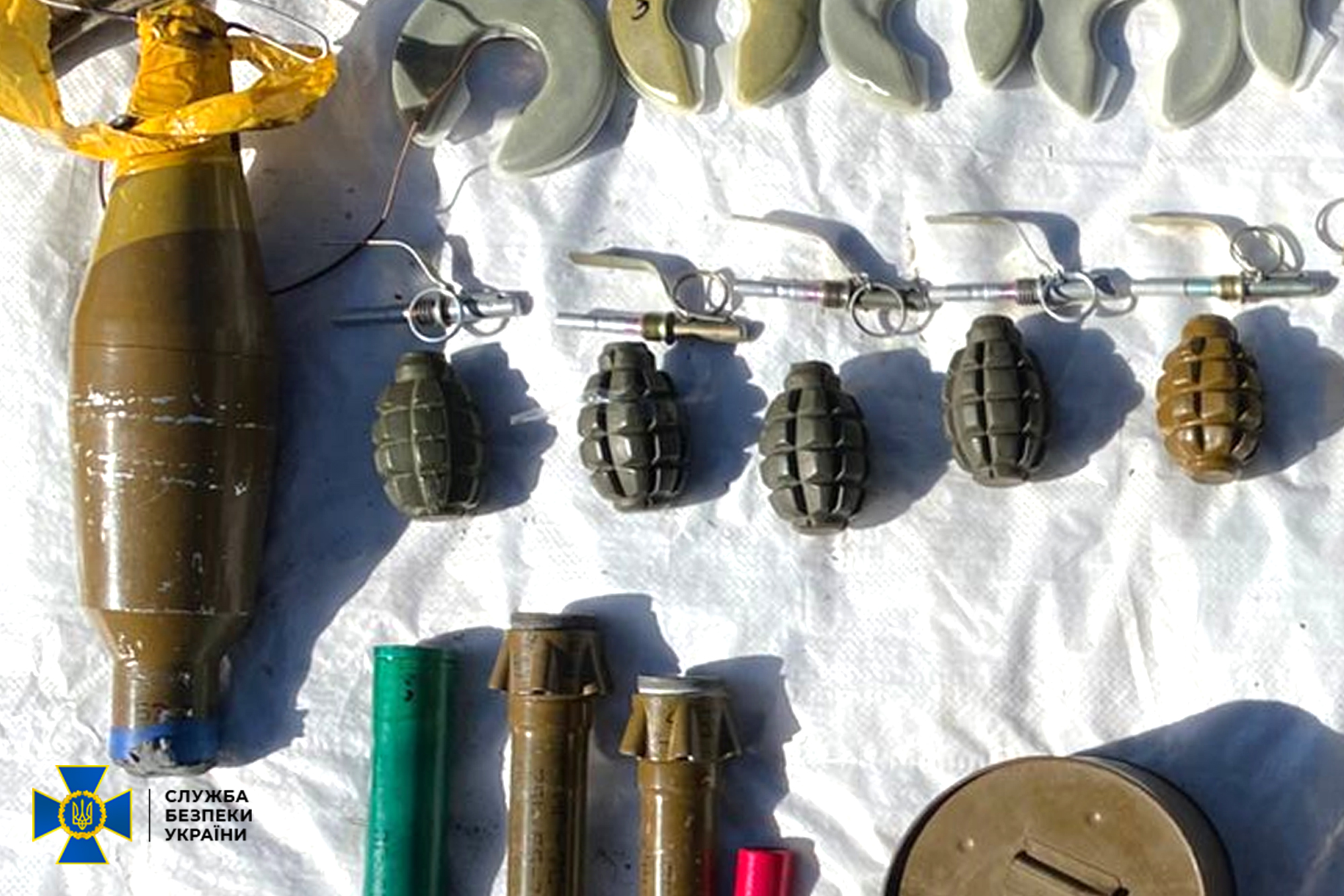 Під час слідчих дій у зловмисників вилучено: 2 автомати АК-74; постріл до протитанкового гранатомета РПГ-7; підствольний гранатомет ГП-25; 6 гранатометних пострілів; 29 ручних бойових гранат із запалами до них; мінометну міну калібру 120 мм; вибухові речовини з підривачем; майже 4 тис. набоїв різного калібру; порохові заряди та димові шашки.