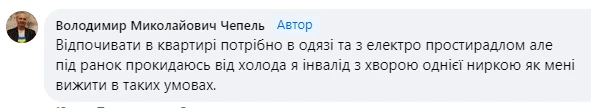 Житомирянин замерзає вночі у квартирі, хоча спить в одязі під електроковдрою
