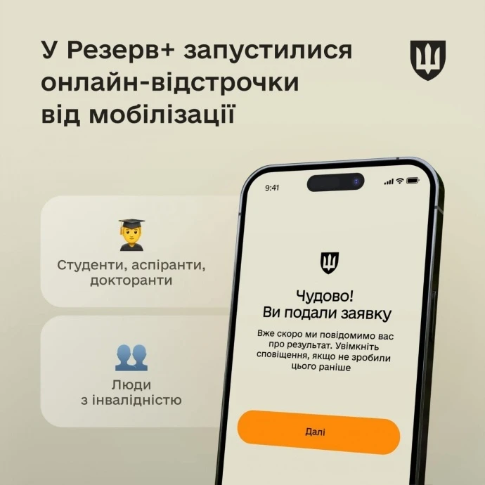 Послуга з оформлення онлайн відстрочки від мобілізації доступна в останньому оновленні додатка “Резерв+”.