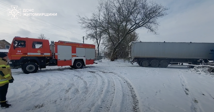 На Житомирщині через негоду рятувальники витягали фуру