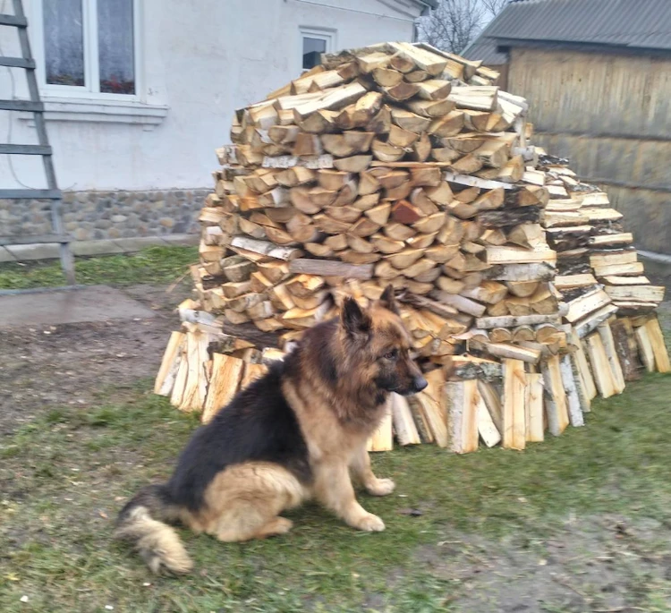 — Березові дрова, складені у формі “бочки” краще і швидше сохнуть і зберігаються на свіжому повітрі, — розповів пан Віталій. — Такий спосіб складання дров я побачив ще в 1994 році, коли їздив до Чехії на заробітки. Так складали дрова й на західній Україні, де теж свого часу бував не раз. Свою “бочку” заввишки більше двох метрів і шириною півтора метри складаю акуратно десь за годинку! А ще хочу сказати, що всі справи по господарству мені допомагає реалізовувати улюбленець нашої родини — 8-річний пес-вівчарка Цезар. Він у нас давно вже став справжньою “зіркою” “Тік Току”.