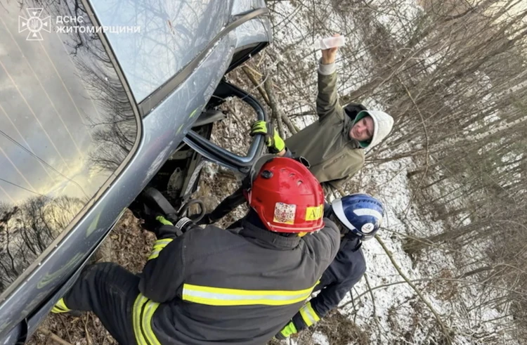 «4 січня о 15:07 до Служби порятунку «101» надійшло повідомлення від представників поліції, що необхідна деблокувати людину з пошкодженого внаслідок ДТП авто. Подія сталася поблизу с. Давидівка Житомирського району. На місці стало відомо, що постраждалого затисло конструкціями автомобіля. Бійці ДСНС за допомогою гідравлічних ножиць провели аварійно-рятувальні роботи, дістали постраждалого та передали його медиками. Каретою швидкої допомоги травмованого доставили до медичного закладу м. Житомир», – йдеться у повідомленні.