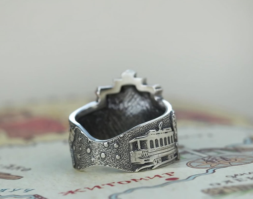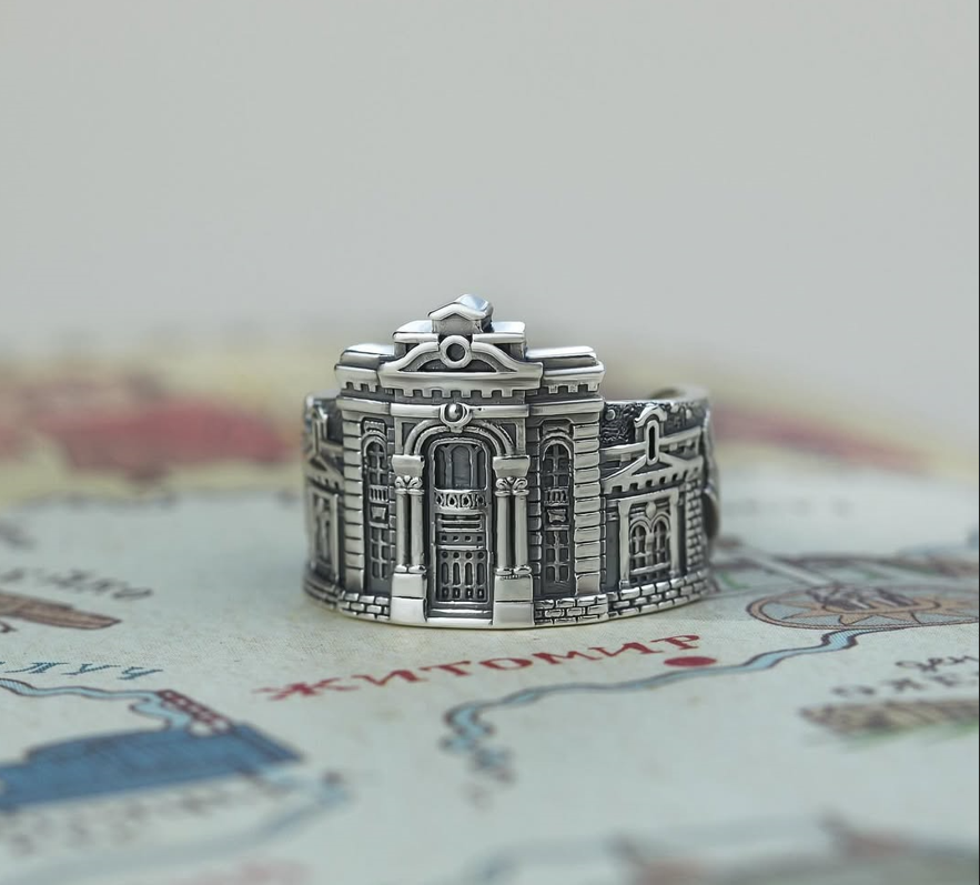 Ювелірний дім з Харкова створив каблучку у формі Дому української культури міста Житомир.