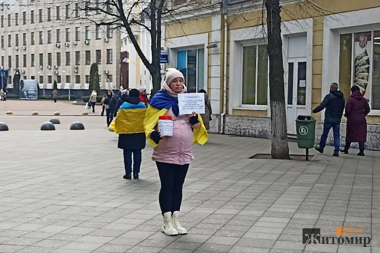 28-річна Вікторія Рожко — вагітна дружина військового 95 окремої десантно-штурмової Поліської бригади Олександра Рожка — понад місяць на вулиці Михайлівській у Житомирі збирає гроші на авто для свого чоловіка, який воює на Курщині.