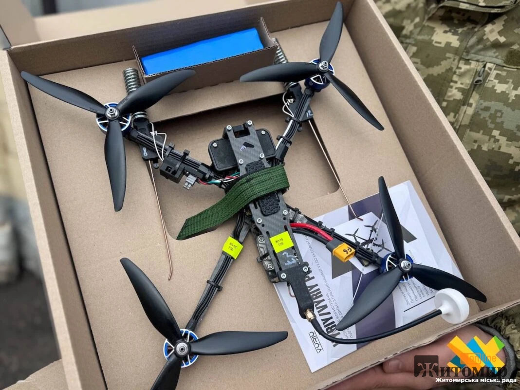 Підтримка наших захисників триває! Від громади Житомира на передову було передано 30 БПЛА мультироторного типу з системою донаведення «VIRIY PRO» 8”.