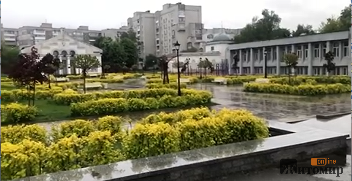 У Житомирі сьогодні дощ, відео з Виставки (навпроти “Глобала”) нашого читача Максима Петровича Контрогайковича.