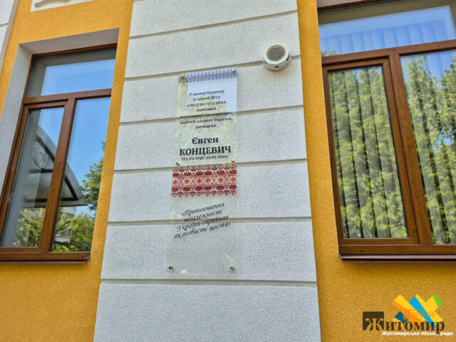 У Житомирі на фасаді ліцею №23 ім. М. Очерета 5 червня відкрили оновлену меморіальну дошку письменнику Євгену Концевичу.