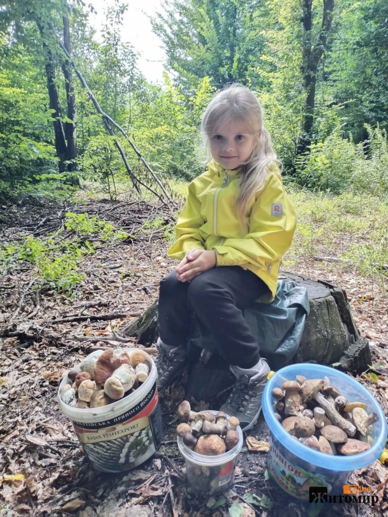 Грибниця Леся Шевчук показала фотографії найкращої помічниці та чудових білих грибів, зібраних саме в цьому лісі поблизу Житомира.