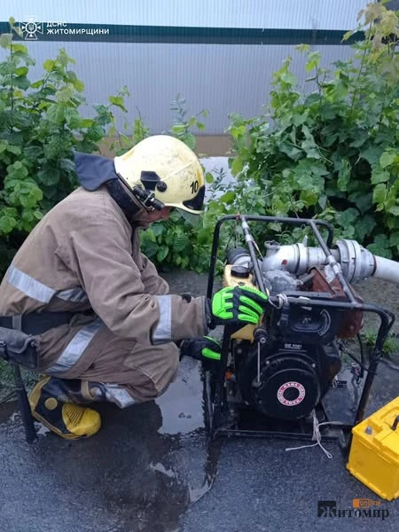 “Зокрема, було підтоплено території пʼяти приватних домоволодінь у Звягелі. Знадобилася допомога рятувальників у відкачці води. По прибуттю на місце події з’ясувалося, що підтоплені житлові будинки, господарчі будівлі та присадибні ділянки. Після восьмигодинної роботи, за допомогою автоцистерни та всмоктувального рукава, а також пожежної насосної станції бійці ДСНС відкачали близько 400 куб. м води.