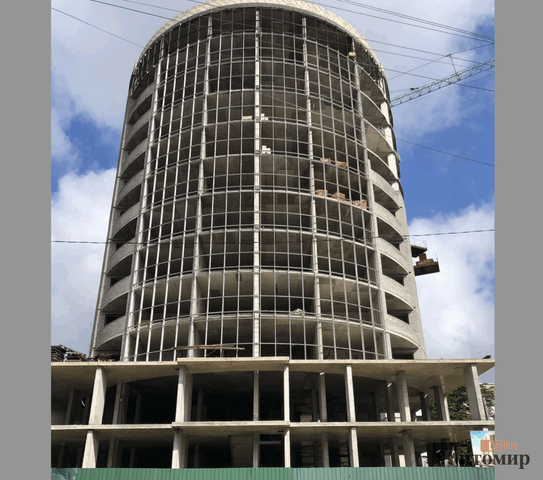 Ця 13-поверхівка почала зводитись на місці пустиря приблизно п’ять років тому. І ніби то все тут було продумано до деталей, тож майже у центрі Житомира, на перехресті вулиць Покровської та Грушевського, запланували побудувати 13-поверховий житловий комплекс “Покровський”.