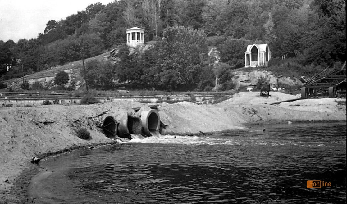 Автор фотографій Олександр Васильович Наголюк пригадує, що під час будівництва мосту у 1980 році через річку була організована тимчасова переправа: вода у водосховищі біля електростанції була спущена, а для перевезення металоконструкцій проклали рельси на піщаній насипі. Через три труби вміщувалися річки Тетерів і Кам’янка.