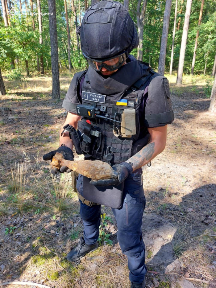 “Ручну гранату часів Другої світової війни знайшли місцеві жителі у лісі поблизу м. Малин Коростенського району. А у Житомирі мінометну міну часів минулих війн виявив господар у себе на подвір’ї під час земельних робіт”, – розповіли у ДСНС.