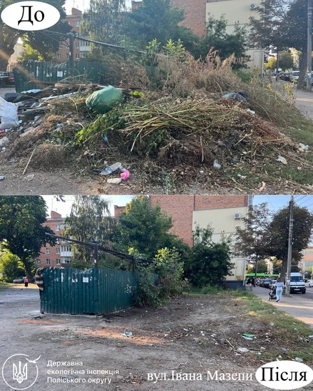 «Нещодавно екоінспекція повідомляла, що 4 вересня під час обстеження території м. Житомира державні інспектори з охорони навколишнього природного середовища виявили факт несанкціонованого складування відходів поблизу контейнерного майданчика на вулиці Івана Мазепи. Інспекція до Житомирської міської ради направила лист з вимогою ліквідувати це сміттєзвалище. 10 вересня під час повторного обстеження території міста держекоінспектори Поліського округу перевірили контейнерні майданчики на вулиці Івана Мазепи. За результатами огляду встановлено, що несанкціоноване складування відходів ліквідовано», – йдеться в повідомленні.