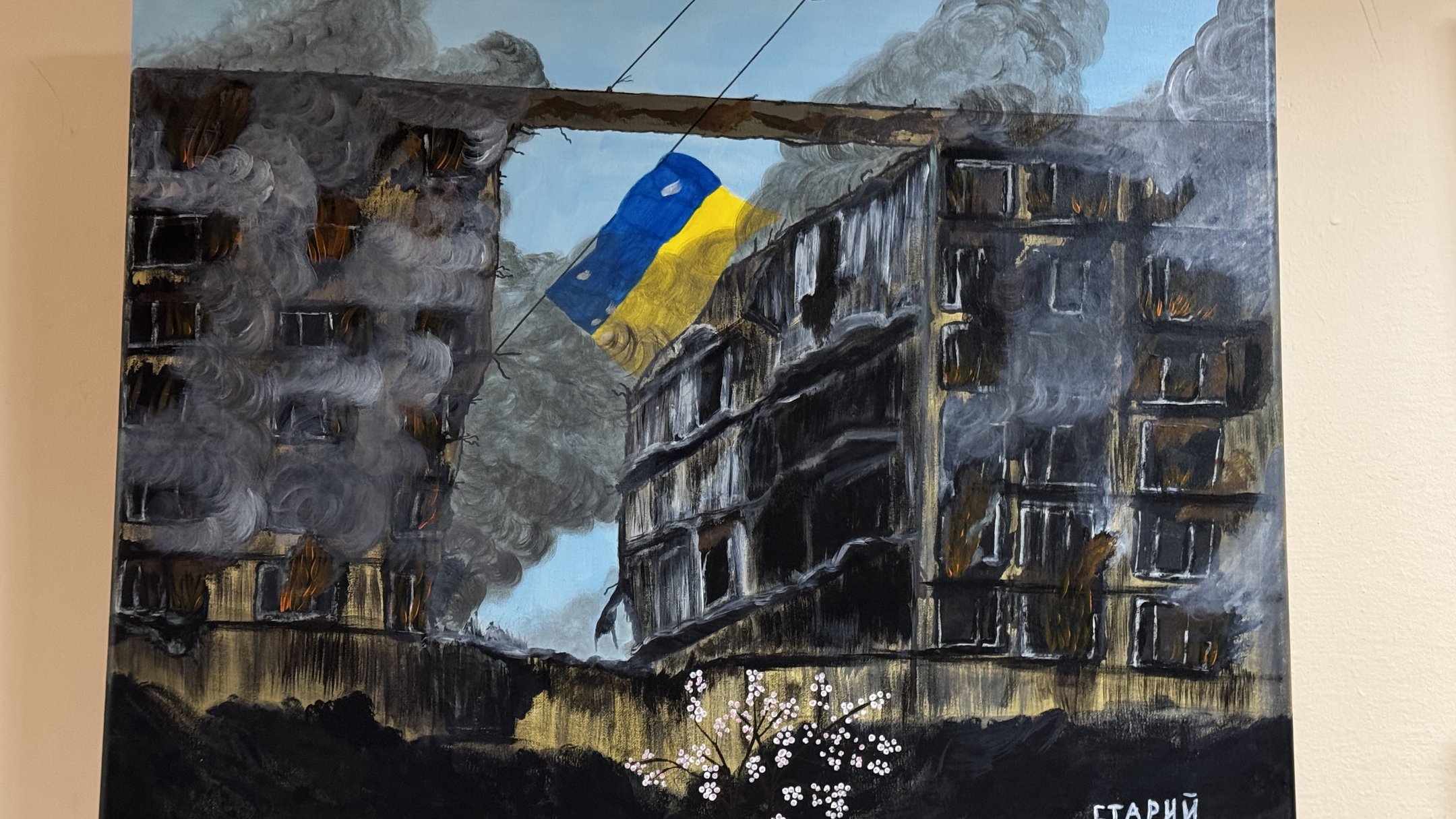 Картина одного з ветеранів російсько-української війни, представлена в експозиції у бібліотеці