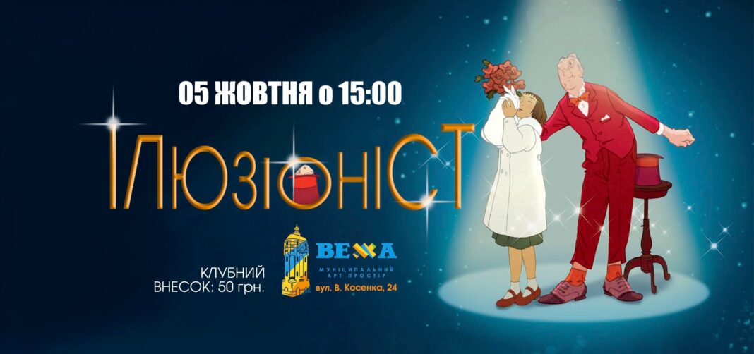 Житомирський фаховий коледж культури і мистецтв ім. Івана Огієнка та АНІМАКЛУБ запрошують на показ анімаційного фільму «Ілюзіоніст / L’ILLUSIONNISTE / THE ILLUSIONIST». Подія відбудеться 05 жовтня о 15:00 у Муніципальному арт-просторі «ВЕЖА» за адресою вул. Віктора Косенка, 24.