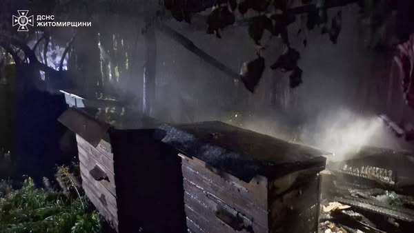 Реклама ПІДПИСАТИСЯ НА TELEGRAMПІДПИСАТИСЯ НА FACEBOOKСвіжі новиниЗаклад BROT у Житомирі потрапив у скандал ще до...Покалічений війною і загублений у системі: історія ветерана з...На трасі Київ-Чоп поліція затримала 36-річного чоловіка, який під...Розслідування на Звягельщині: поліція та прокуратура перевіряють причини масової...FacebookTwitterTelegramWhatsAppViberEmailPrintCopy URL ГоловнаПодіїНа Бердичівщині горіла пасіка: від знищення вогнем вдалося врятувати 10 вуликів. ФОТОНа Бердичівщині горіла пасіка: від знищення вогнем вдалося врятувати 10 вуликів. ФОТО8 Жовтня, 2025р 12:51 Учора ввечері в Андрушівці загорілися вулики для бджіл на приватній пасіці. Реклама Вогонь вже охопив 4 дерев’яні конструкції і кожна секунда мала значення — полум’я могло знищити все. Реклама Поширити у Facebook Попередня статтяУ Житомирі стартувала 60-та сесія муніципальної освітньої програми «Школа місцевого самоврядування»Наступна статтяУ Житомирі відбудеться 30-тий Міжнародний фестиваль польської культури «Веселка Полісся»Читайте також ІнформаціяЗаклад BROT у Житомирі потрапив у скандал ще до відкриття 21 Квітня, 2026р 21:07 ІнформаціяПокалічений війною і загублений у системі: історія ветерана з Житомирщини 21 Квітня, 2026р 20:49 ІнформаціяНа трасі Київ-Чоп поліція затримала 36-річного чоловіка, який під виглядом військового вимагав пальне на АЗС 21 Квітня, 2026р 19:24 ІнформаціяРозслідування на Звягельщині: поліція та прокуратура перевіряють причини масової загибелі тварин на ДП «Рихальське» 21 Квітня, 2026р 18:52 ІнформаціяВстановити пандуси, підйомники та пішохідну інфраструктуру – у Житомирі облаштовують безбар’єрні маршрути 21 Квітня, 2026р 17:50 ПодіїНа війні Малинська громада втратила Захисника Володимира Андрієнка 21 Квітня, 2026р 17:41 Автор: Катерина Смішко Реклама