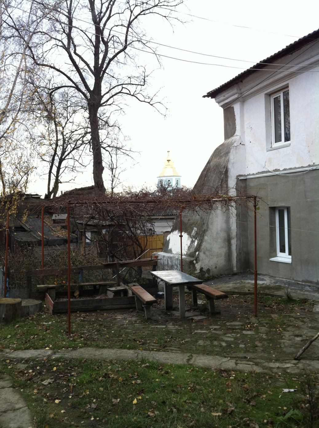 Вид на Замкову гору з подвірʼя найстарішого будинку у Житомирі, 2012 рік. ФОТО