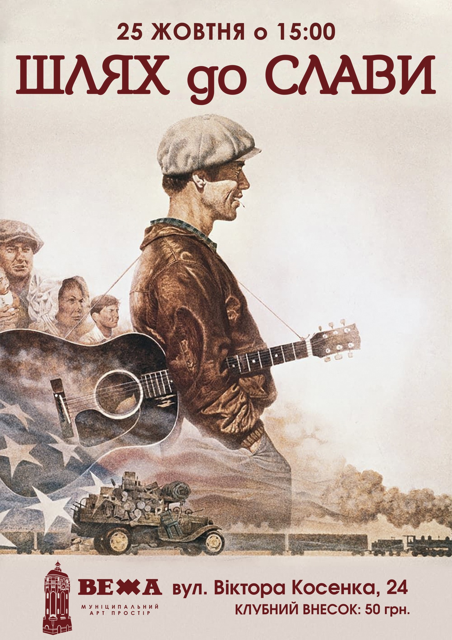 25 жовтня о 15:00 у Муніципальному арт-просторі «ВЕЖА» (вул. Віктора Косенка, 24) відбудеться показ фільму «Шлях до слави» / Bound for Glory у межах проєкту Gnatyuk Art Cinema.