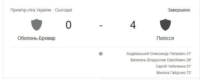 Житомирське «Полісся» здобуло впевнену перемогу у виїзному матчі десятого туру Української Прем’єр-ліги, розгромивши «Оболонь-Бровар» із рахунком 0:4.