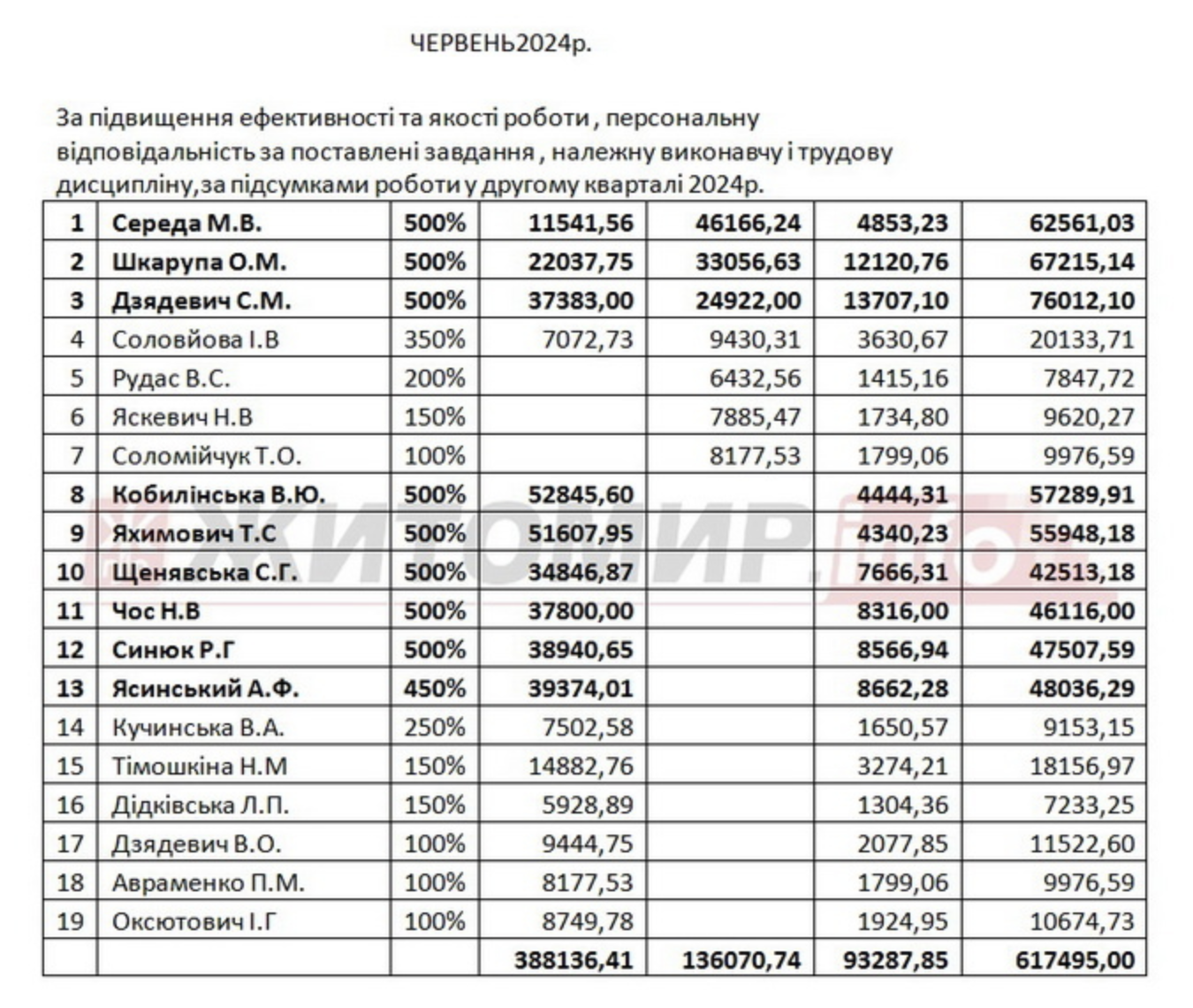 Загальна сума таких виплат склала 1,14 млн грн, тоді як інші працівники отримували лише 2/3 окладу.