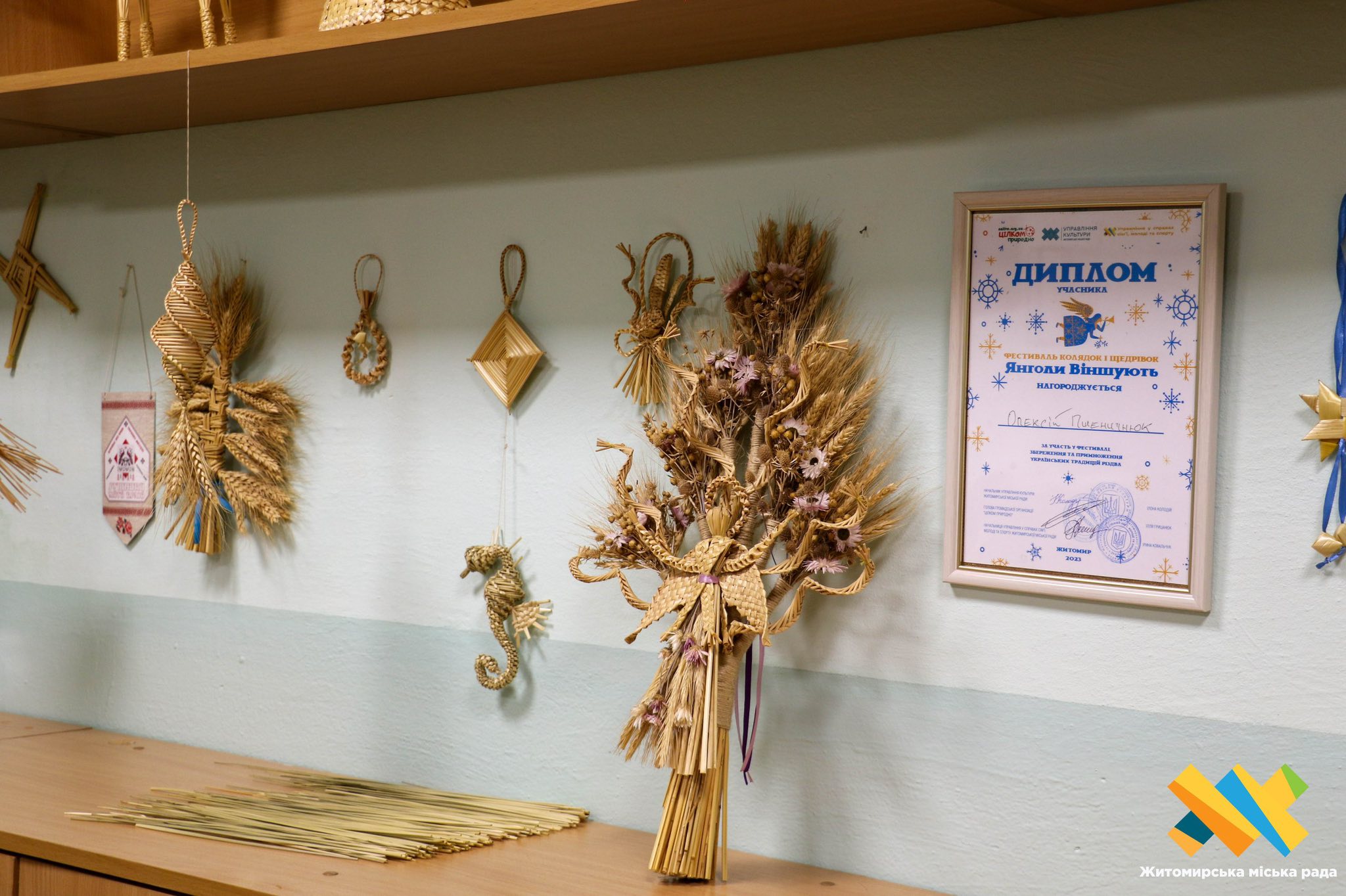 У Житомирі діти знайомляться з народним ремеслом у рамках творчого гуртка під керівництвом Олексія Пшеничнюка, майстра народної творчості. У затишній майстерні пахне сухою соломою, а з дитячих рук народжуються солом’яні зірки, дідухи, обереги та капелюхи — символи добра, захисту й українського коріння.