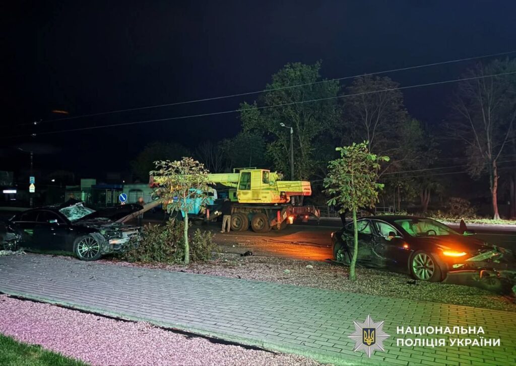 Уночі 14 жовтня на проспекті Незалежності в Житомирі сталася серйозна дорожня аварія за участю двох авто — Tesla та Mercedes. У результаті зіткнення Mercedes злетів з проїжджої частини та вдарився в електроопору.