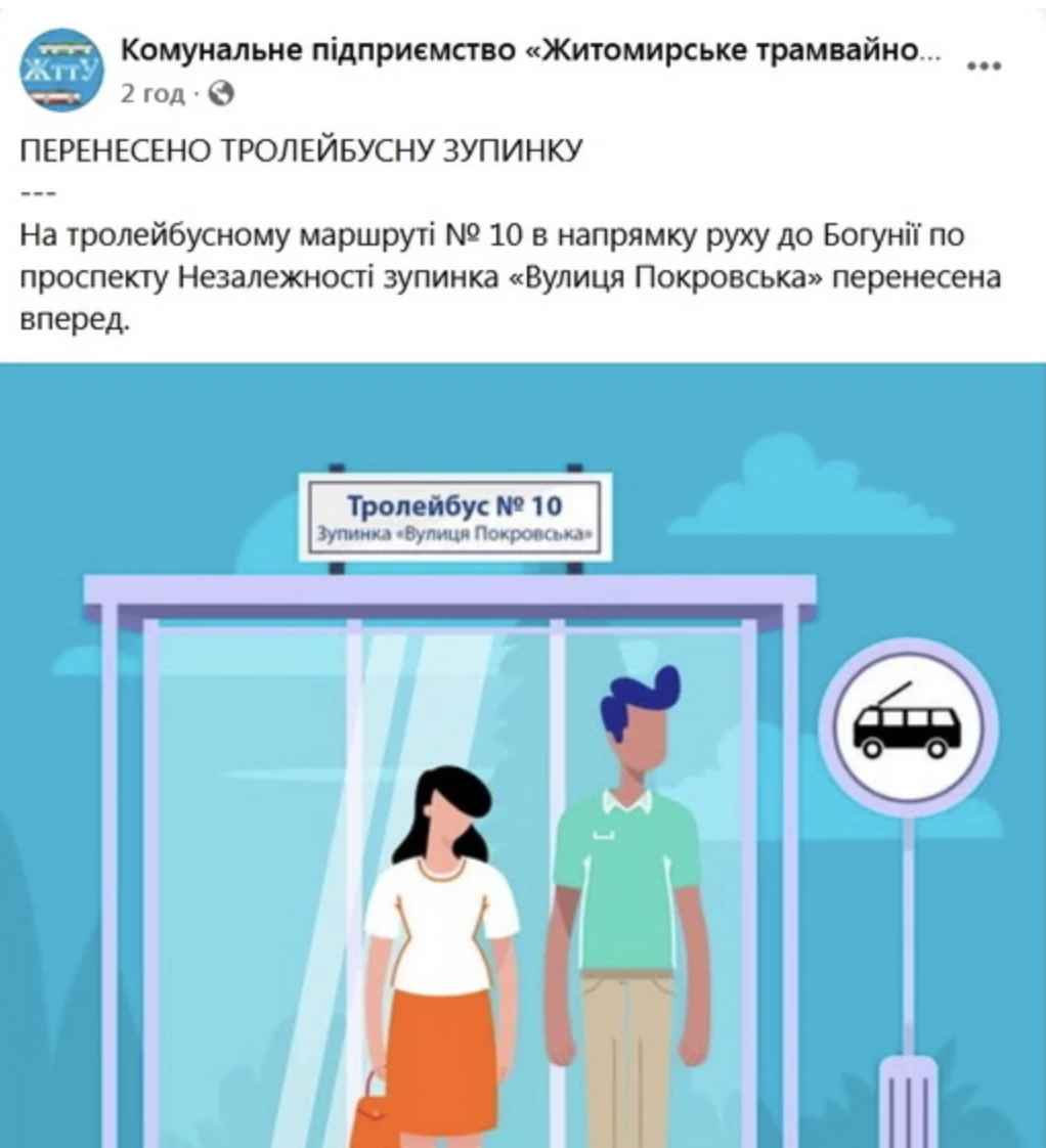 Паралельно з облаштуванням заїзду, Житомирське ТТУ повідомило про зміни для громадського транспорту: тролейбусну зупинку «Вулиця Покровська» на проспекті Незалежності буде перенесено вперед, у напрямку мікрорайону Богунія.