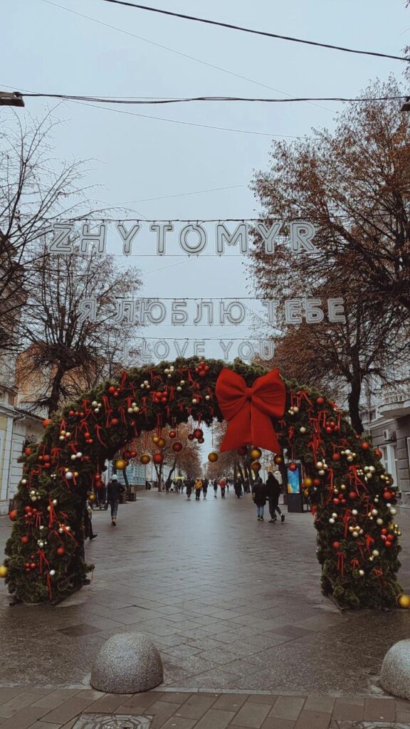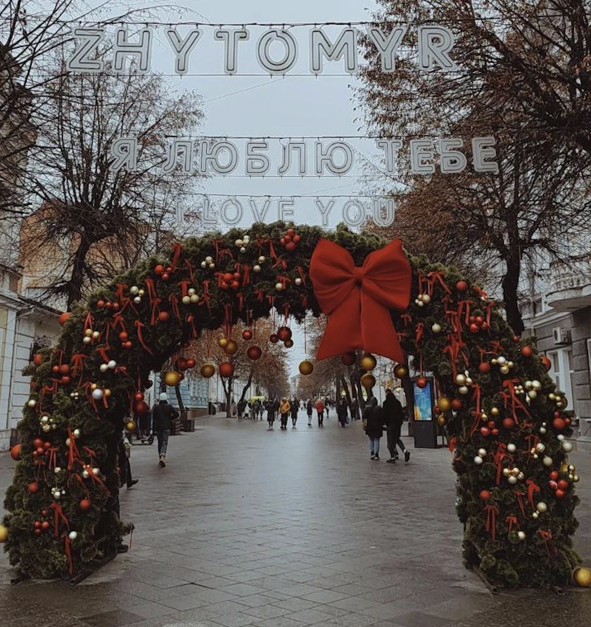 Реклама ПІДПИСАТИСЯ НА TELEGRAMПІДПИСАТИСЯ НА FACEBOOKСвіжі новиниПогоня у центрі Житомира: як водій із майже 12-кратною...Багатші за гендиректора Укрпошти: оприлюднено космічні зарплати головних лісничих...102-річчя житомирянина Віктора Поліщука: життєвий шлях від Голодомору до...«Класичної перемоги не буде»: адмірал НАТО Роб Бауер озвучив...FacebookTwitterTelegramWhatsAppViberEmailPrintCopy URL ГоловнаПодіїНа Михайлівській у Житомирі відкрили святкову фотолокаціюНа Михайлівській у Житомирі відкрили святкову фотолокацію30 Листопада, 2025р 19:48 У Житомирі на пішохідній вулиці Михайлівській з’явилася нова новорічна фотозона. Реклама На вході до вулиці встановили велику арку, оздоблену ялинковими гілками, кулями та червоними стрічками, а посеред — яскравий бант. Реклама Поширити у Facebook Попередня статтяУ Житомирі відбувся Всеукраїнський шаховий турнір пам’яті Артема Сачука. ВІДЕОНаступна статтяБіля Житомира двічі ледь не збудували атомну електростанцію: як область уникнула небезпечного сусідстваЧитайте також ПодіїПогоня у центрі Житомира: як водій із майже 12-кратною нормою алкоголю намагався перехитрити поліцію охорони 21 Квітня, 2026р 12:38 ПодіїБагатші за гендиректора Укрпошти: оприлюднено космічні зарплати головних лісничих в злиденній країні. За що? 21 Квітня, 2026р 12:29 Інформація102-річчя житомирянина Віктора Поліщука: життєвий шлях від Голодомору до трьох праправнуків 21 Квітня, 2026р 12:15 Інформація«Класичної перемоги не буде»: адмірал НАТО Роб Бауер озвучив сценарій завершення війни в Україні 21 Квітня, 2026р 12:03 ІнформаціяУ Житомирі відбувся перший в Україні чемпіонат із ЗФП серед ветеранів у категорії «Незламні» 21 Квітня, 2026р 11:54 ПодіїСмертельна знахідка на полі: у Брусилові сапери знищили вибухонебезпечні предмети. ФОТО 21 Квітня, 2026р 10:19 Автор: Стелла Біла Реклама