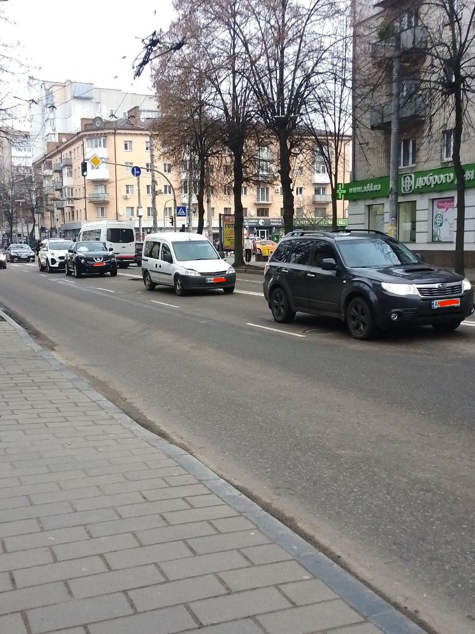 Напроти ЦУМа зіткнулися три автівки: Subaru Forester, Nissan Juke та Opel Combo. Автівки зазнали механічних ушкоджень.